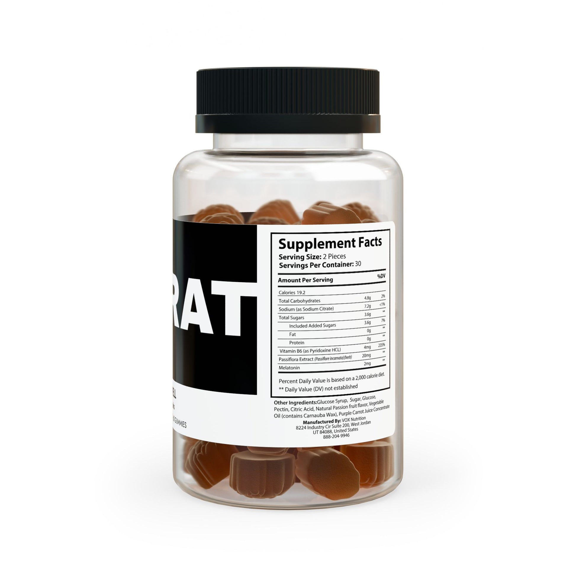 Ingredients: Sodium (as Sodium Citrate), Vitamin B6 (as Pyridoxine HCL), Passiora Extract (Passiore incarnata)(herb), Melatonin. Other Ingredients: Glucose Syrup, Sugar, Glucose, Pectin, Citric Acid, Natural Passion fruit avor, Vegetable Oil (contains Carnauba Wax), Purple Carrot Juice Concentrate